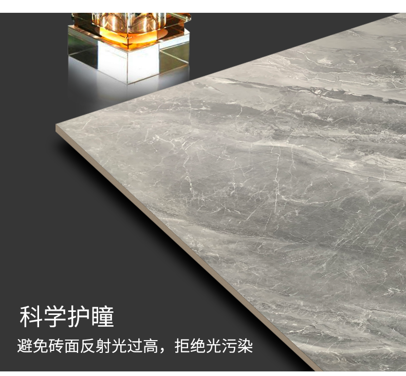 柔光瓷磚是磚面反射介于強(qiáng)光與弱光之間的一類瓷磚,其結(jié)合亮光類瓷磚的高調(diào)明艷裝飾和啞光類瓷磚的低調(diào)內(nèi)斂搭配效果,通過(guò)動(dòng)態(tài)柔光蠟拋技術(shù),降低產(chǎn)品反光率,從而達(dá)到人體舒適的視覺(jué)感受以及無(wú)光污染的空間裝飾效果。優(yōu)點(diǎn):1.視覺(jué)舒適,無(wú)光污染 2.堅(jiān)固耐磨,不易刮花.