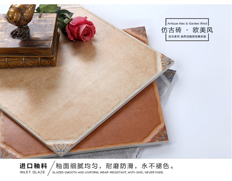 金曼古仿古地磚,采用國(guó)際先進(jìn)的超大型壓機(jī)自動(dòng)成型,經(jīng)世界一流的滾筒印花和高溫煅燒而成,通過(guò)仿石、仿巖、仿木、仿布、仿金屬等多種表現(xiàn)方式,產(chǎn)品花色圖案新穎時(shí)尚,領(lǐng)先國(guó)際潮流,具有超耐磨、防滑、防污等高性能指標(biāo)。