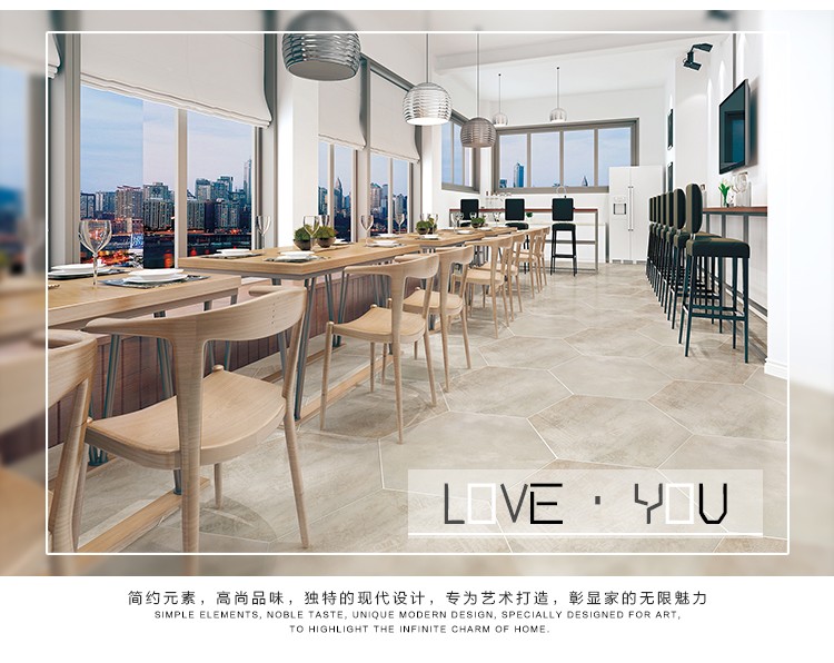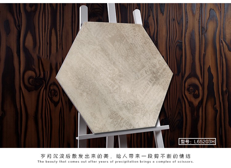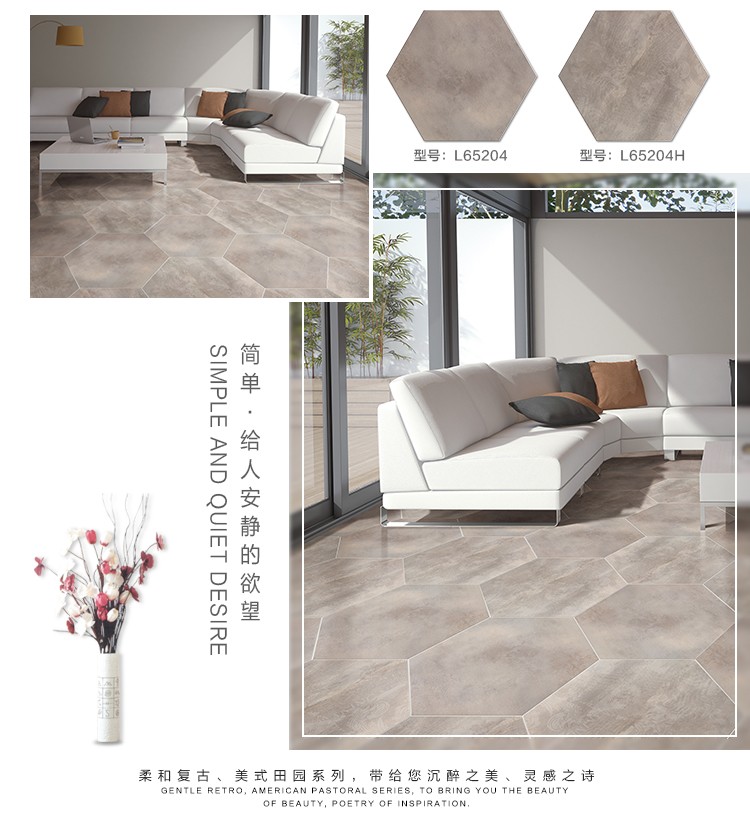 金曼古瓷磚廠家六角磚是一種表面呈現木紋裝飾圖案的環保建材.紋路逼真、自然樸實、沒有木地板褪色、不耐磨等缺點;曼古陶瓷木紋磚系列線條明快,圖案清晰為特色。本身具有阻燃,不腐蝕的特點,綠色、環保型建材;產品使用壽命長,耐磨,無需像木制產品那樣周期性地打蠟保養等。