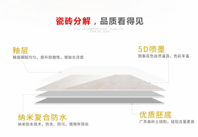 金曼古瓷磚廠家特價金剛石因高品質而得名,是一款極具天然石材效果和微晶石質感的仿石材瓷磚,它不但在價格、環保、耐用和清潔上極具優勢,在質感、規格、花色、重量等指標上,金剛石都遠遠勝于石材、拋光磚。相比其他種類的產品,它最大的特點可以用“高亮度、高耐磨、高平整、高逼真、高清晰、高環保”。
