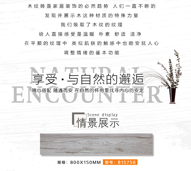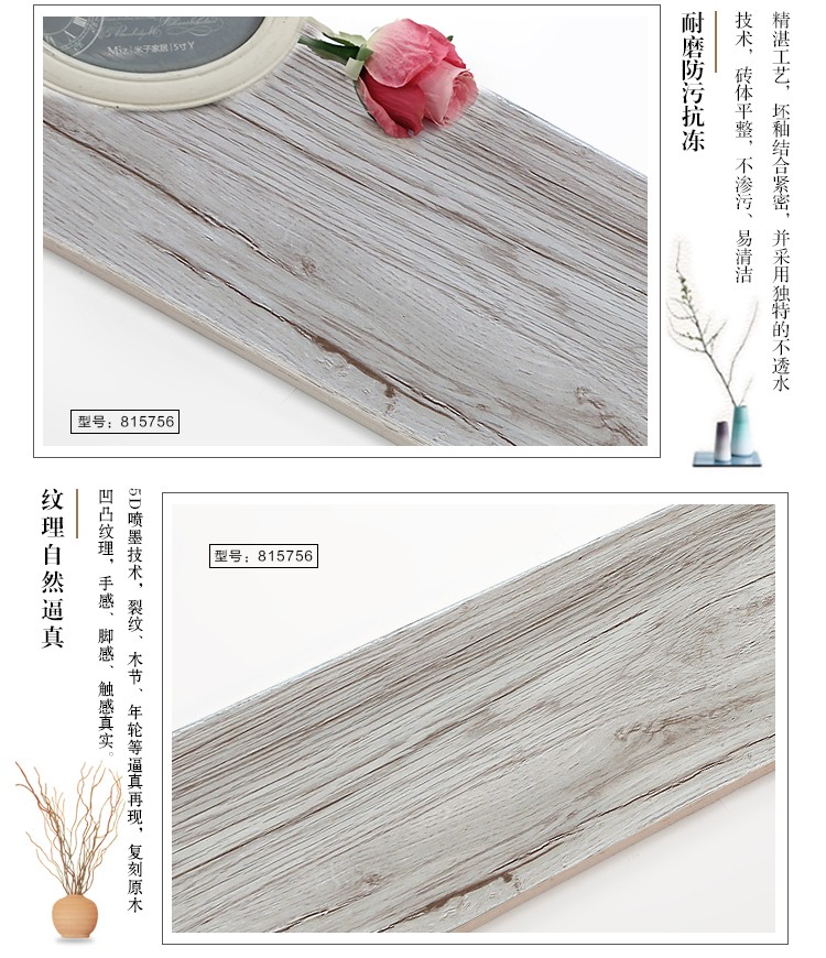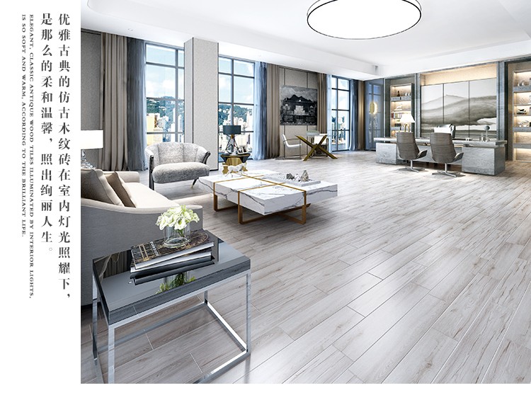 金曼古木紋磚,是一種表面呈現木紋裝飾圖案的環保建材.紋路逼真、自然樸實、沒有木地板褪色、不耐磨等缺點;曼古陶瓷木紋磚系列線條明快,圖案清晰為特色。本身具有阻燃,不腐蝕的特點,綠色、環保型建材;產品使用壽命長,耐磨,無需像木制產品那樣周期性地打蠟保養等.