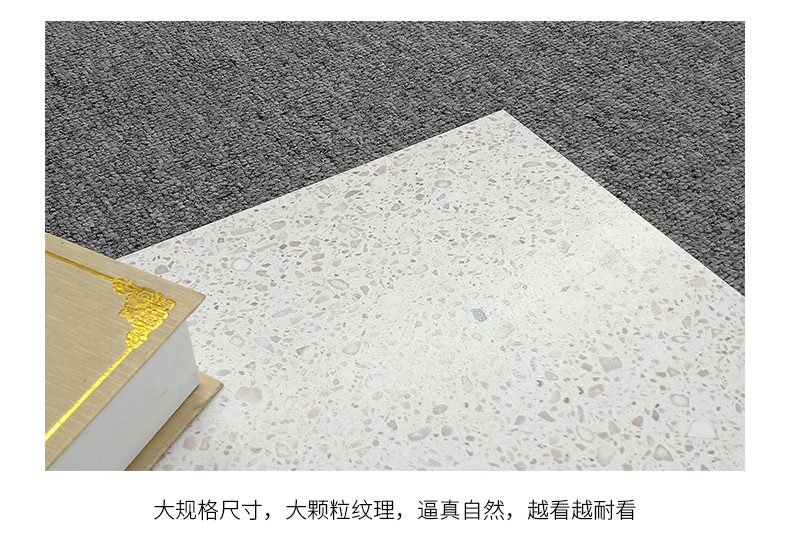 大尺寸水磨石防滑耐磨,應用于公共場合更具優(yōu)勢,自然簡約的紋理,百搭適用性廣,水磨石里面大顆粒,不規(guī)則的石子花紋,很有不確定的隨機美感。始于顏值/陷于工藝/忠于品質(zhì)!