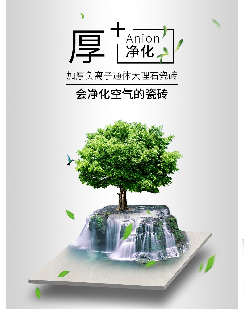 金曼古負離子瓷磚,能持續產生負離子,提高居室內空氣負離子濃度,改善室內空氣質量,提升人體健康水平。負離子被稱為空氣維生素,負離子瓷磚創造安全健康的空間環境。工程用磚全拋釉地磚、通體大理石瓷磚、金剛石地磚等支持加工定做家裝瓷磚批發。