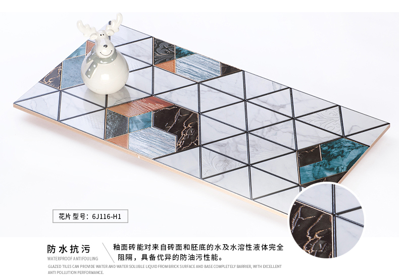 適用于洗手間、廚房、室外陽臺的立面裝飾,是保護(hù)墻面免遭水濺的有效途徑。它們不僅用于墻面,用在門窗的邊緣裝飾上,也是一種有趣的裝飾元素。用于踢腳線處的裝飾墻磚,既美觀又保護(hù)墻基不易被鞋或桌椅凳腳弄臟。