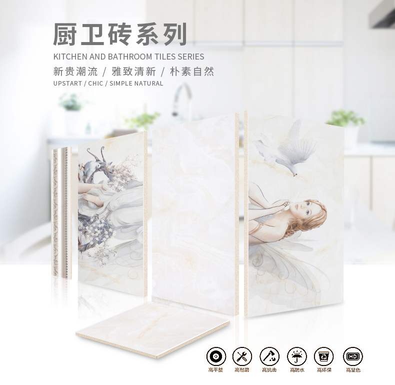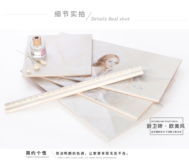 適用于洗手間、廚房、室外陽臺的立面裝飾,是保護墻面免遭水濺的有效途徑。它們不僅用于墻面,用在門窗的邊緣裝飾上,也是一種有趣的裝飾元素。用于踢腳線處的裝飾墻磚,既美觀又保護墻基不易被鞋或桌椅凳腳弄臟。