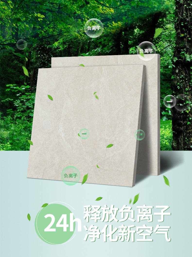 金曼古負離子瓷磚,能持續產生負離子,提高居室內空氣負離子濃度,改善室內空氣質量,提升人體健康水平。負離子被稱為空氣維生素,負離子瓷磚創造安全健康的空間環境。工程用磚全拋釉地磚、通體大理石瓷磚、金剛石地磚等支持加工定做家裝瓷磚批發。