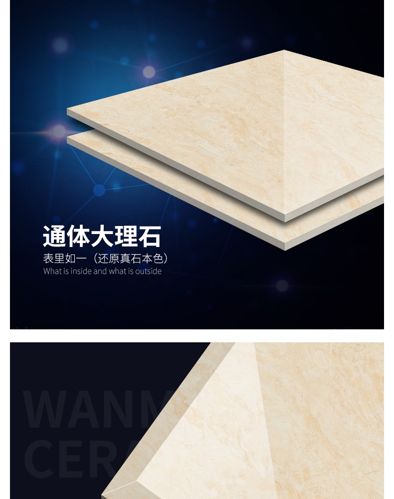 通體大理石瓷磚,即是大理石瓷磚的一種,亦是一種拋釉磚坯經過拋光工序之后形成的瓷磚,只不過通體大理石瓷磚更加注重對瓷磚磚坯的塑造,其原本原理也是在大理石瓷磚基礎上,加類似于瓷磚表面紋理的磚坯組合而成的瓷磚產品。另外,現階段各種傳統單純釉面的大理石瓷磚產品已經開始泛濫,而通體大理石瓷磚的出現無疑又是給已經乏力的大理石瓷磚市場注入新的活力.應用廣,市場大.