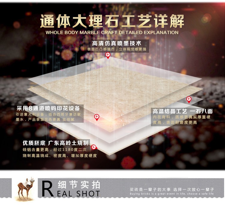 通體大理石瓷磚,即是大理石瓷磚的一種,亦是一種拋釉磚坯經(jīng)過(guò)拋光工序之后形成的瓷磚,只不過(guò)通體大理石瓷磚更加注重對(duì)瓷磚磚坯的塑造,其原本原理也是在大理石瓷磚基礎(chǔ)上,加類似于瓷磚表面紋理的磚坯組合而成的瓷磚產(chǎn)品。另外,現(xiàn)階段各種傳統(tǒng)單純釉面的大理石瓷磚產(chǎn)品已經(jīng)開(kāi)始泛濫,而通體大理石瓷磚的出現(xiàn)無(wú)疑又是給已經(jīng)乏力的大理石瓷磚市場(chǎng)注入新的活力.應(yīng)用廣,市場(chǎng)大.