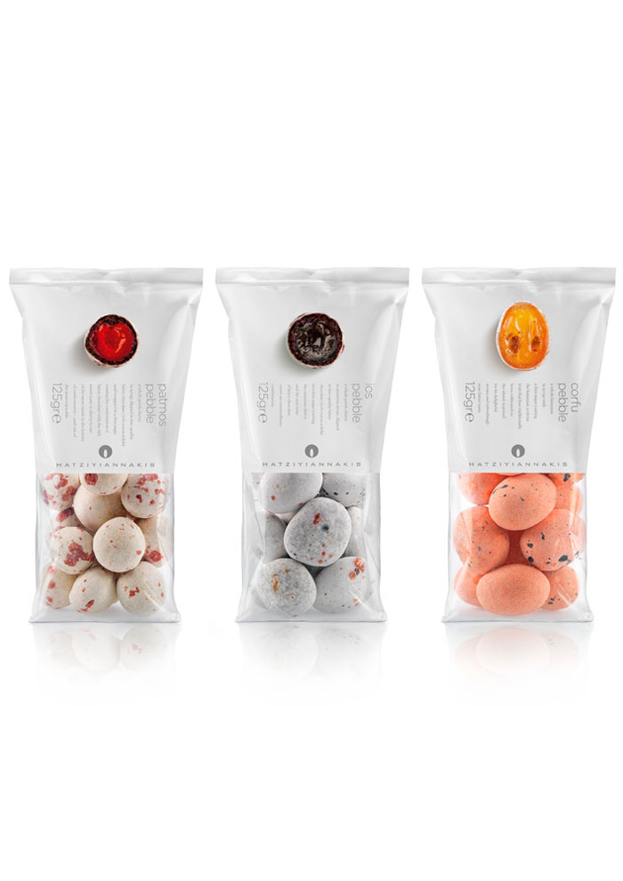 “hatziyiannakis是頂心的糖果制造商在希臘一個在60年的歷史(希臘)市場。為了促進他們的產(chǎn)品在歐洲市場,該公司分配給我們的重新設(shè)計他們的企業(yè)身份,以及為一個新的產(chǎn)品范圍內(nèi)的包裝,“鵝卵石”:圓形糖果的多汁水果或堅果和一個薄的糖涂層覆蓋的核心。